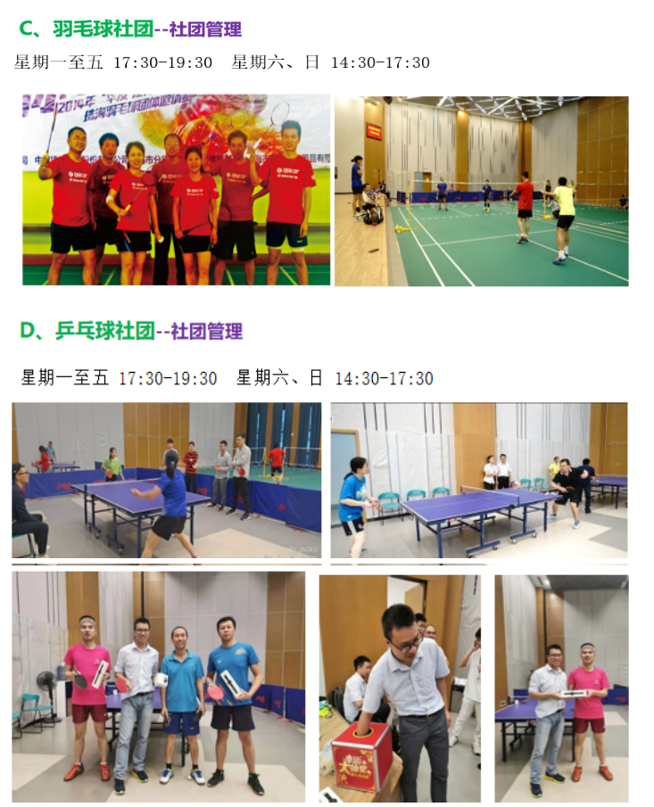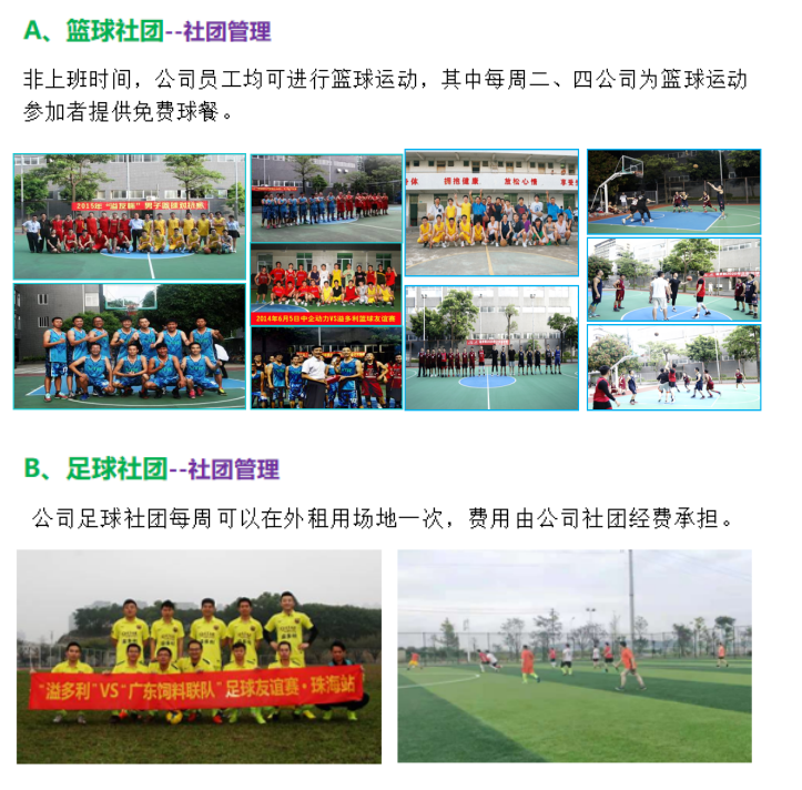 為豐富員工業(yè)余文化生活,創(chuàng)造員工參與活動、相互交流的機會,增強企業(yè)凝聚力,公司組建了籃球、足球、羽毛球、乒乓球、戶外登山、興趣沙龍及健美塑形共7個文體社團,配備了相應的活動場地和設施,每年給予每個社團10000元經(jīng)費支持。員工可根據(jù)個人的文體特長、興趣愛好自行選擇參加社團。