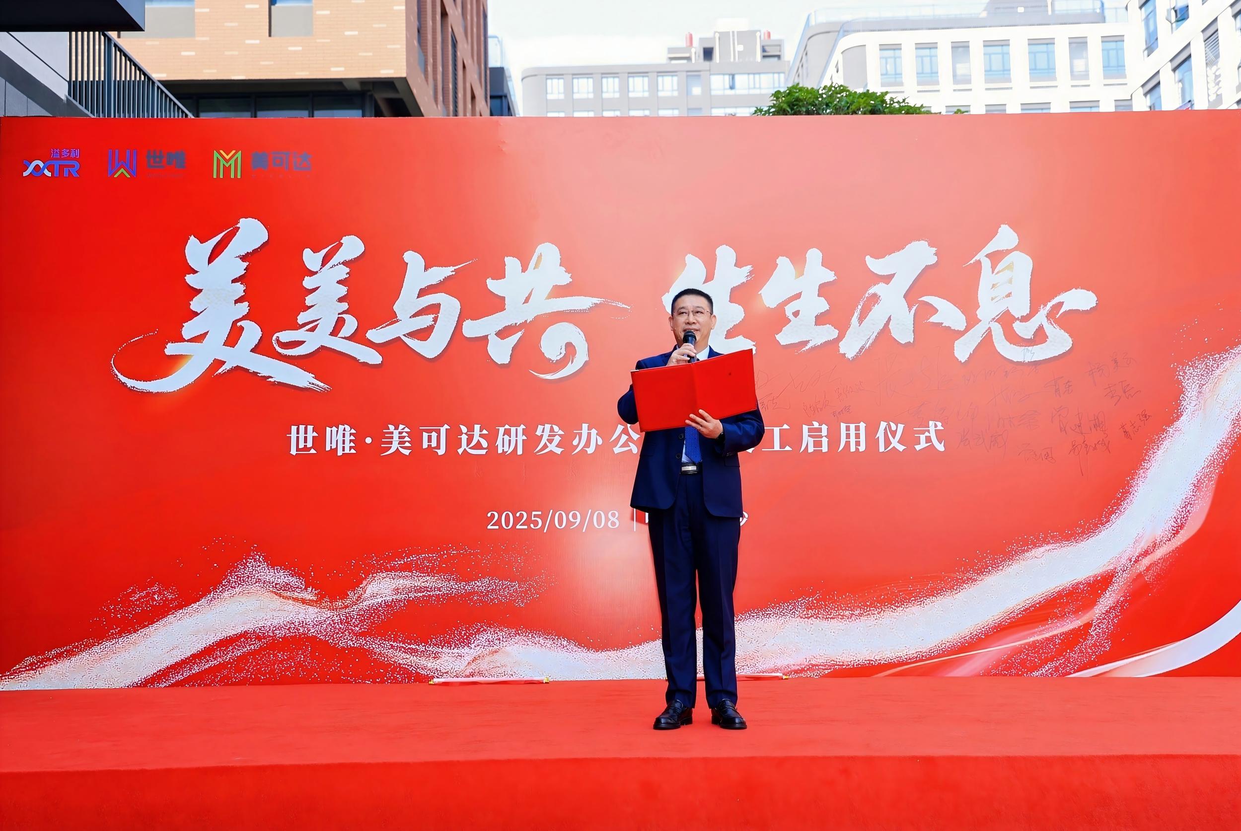 2025年9月8日上午,溢多利旗下子公司成功舉辦了“美美與共·生生不息”——世唯?美可達研發辦公大樓竣工啟用儀式,陳少美董事長、周德榮總裁出席活動。這不僅是世唯與美可達公司發展史上的重要里程碑,更是溢多利深化業務布局、強化創新驅動的重要舉措。